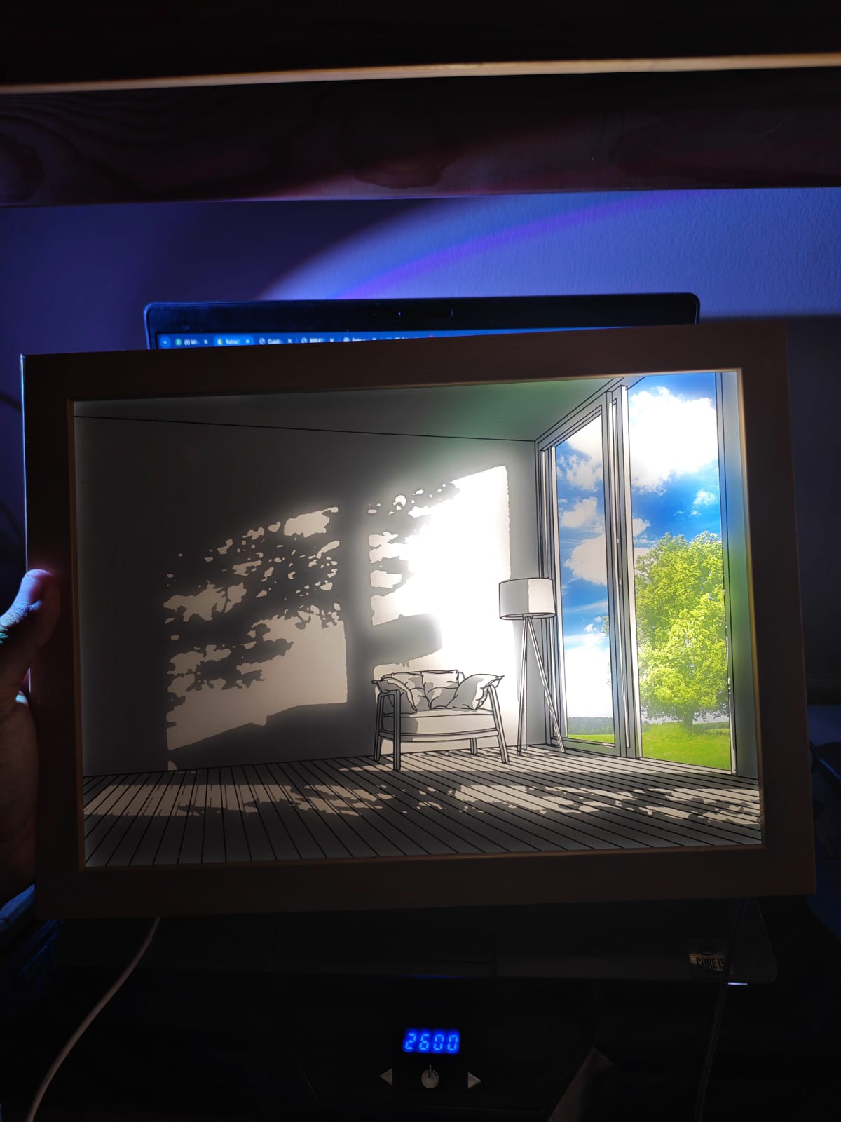 la luz se distribuye detrás de la imagen para dar efecto “cuadro vivo”.